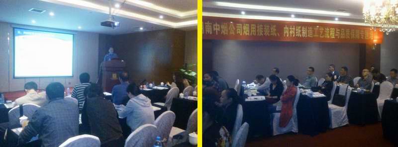在此次湖南中烟公司组织的产品知识专业培训课上,金箔包装公司根据湖南中烟的要求,准备了一份详尽的培训资料,由技术中心主任朱玉祥主讲,培训内容涵盖烟用内衬纸的发展、生产、工艺和质量控制等,展示了金箔包装近30年从事烟草包装材料研发、生产及质量控制等方面深厚的技术积淀和管理实力,获得了湖南中烟的高度赞誉,此举也有效提升了公司在客户心目中的企业形象。