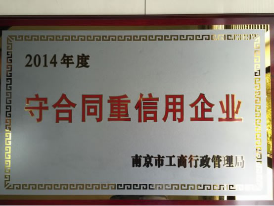 近日,南京市工商行政管理局正式授予金箔包装公司“2014年度守合同重信用企业”称号,这是公司继获得 “2014年度江宁区守合同重信用企业”后,再次获得的市级评定!