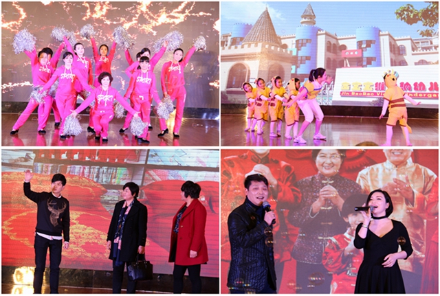 此后,由金箔艺术团组织,十佳妇女领衔的主题演出华美上演,将庆祝活动推向高潮。金宝宝幼儿园老师冯文婷与可爱的小朋友们一起带来的《阳光下的花朵》,展现出集团女性爱岗敬业的良好形象;金东海公司十佳妇女范先云带来的黄梅戏中“钻石级”的唱段《夫妻双双把家还》更是唱出了广大女同胞们的心声;金箔置业苏云则与女儿一起以一首《写给妈妈的诗》,通过女儿的心声,反映集团女性伟大的爱;鑫元机电财务会计唐秋芳把集团江主席提出的“财务人员十五字方针”不仅牢记于心,更通过灵动的双手通过十字绣在现场展示;金江包装邵泽群与同伴们带来的交谊舞《自由飞翔》惊艳亮相,将现代女性的美,体现得淋漓精致;