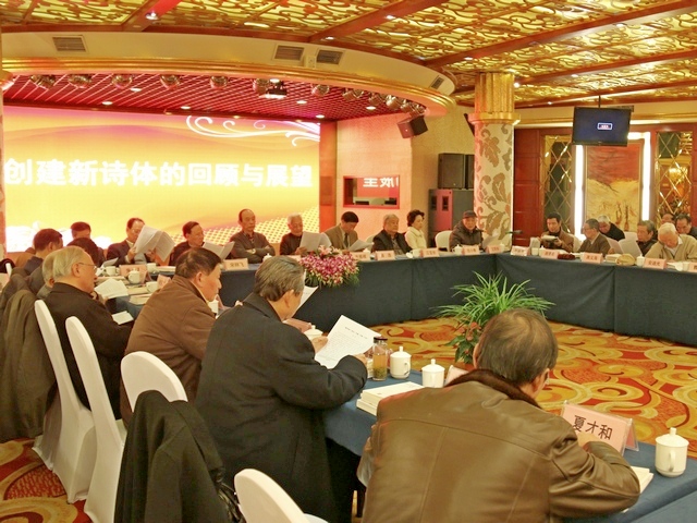 代表们回顾了创建新诗体这一课题是2013年中国当代诗坛泰斗贺敬之倡导的,是响应《人民日报》号召创建的,是当代中国天时地利人和的条件催生的。新诗体是吸取了格律诗、自由诗的优势,避开了苛繁格律和放任乱写的弊端,不断试验创建的,求诗味,求精美,句数自由,押新(普通话)韵。