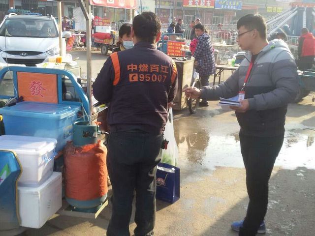 金宝跳蚤湖熟市场组织液化气入户专项检查